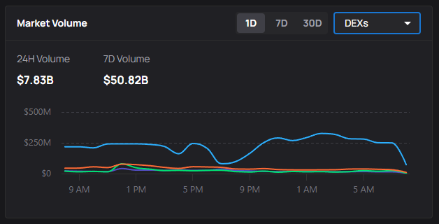 The Market Volume panel in the Discover tab shows you where liquidity is moving across DEXs and launchpads in real time. It tracks activity over multiple timeframes, letting you spot early rotations and avoid chasing late moves.