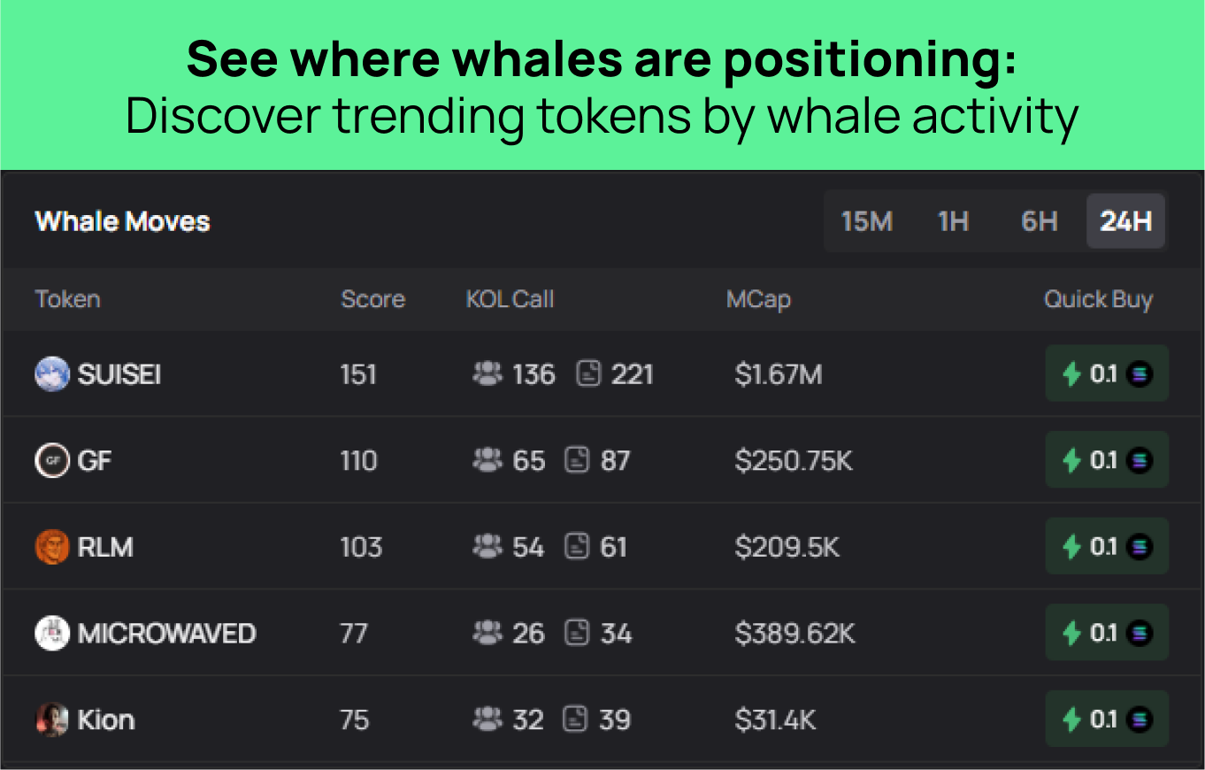 Turns whale trades into token-level trends