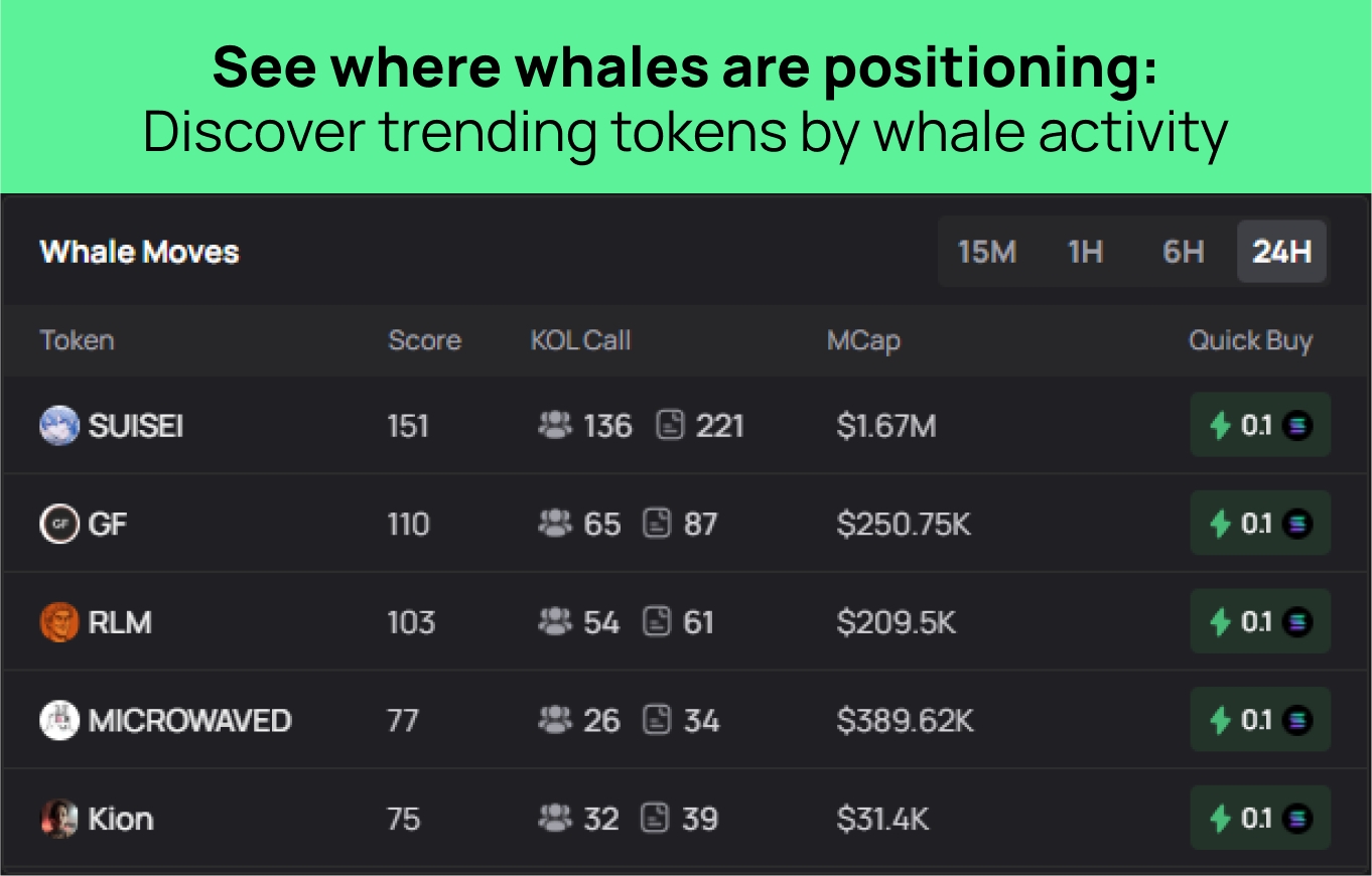 Use Quick Buy to ride alongside concentrated whale inflows.